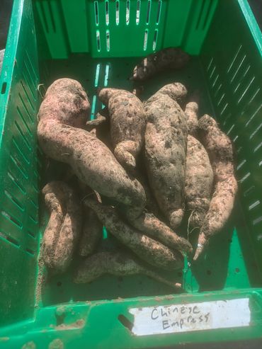 Chinese Empress produces above average yields of sweet potatoes with light orange skin and light orange flesh. It seems to perform well in tough conditions.