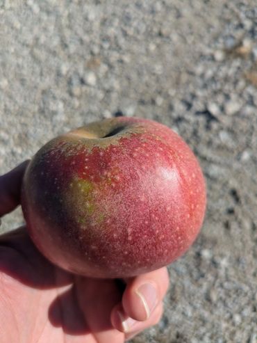 Fall Limbertwig is a medium to large apple with reddish orange color. It's a very firm dense apple, slightly acidic and described as being almost sweet. The flavor reminds us a bit of Mcintosh but a little more mild. It has a thick skin that helps it resist pests and store well.