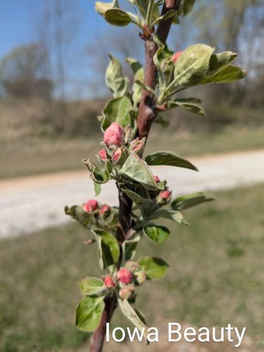 Introduced by C.G. Patten of Charles City, Iowa. The Iowa Beauty apple is said to be firm with yellowish flesh, very juicy, very sweet, and tangy.
