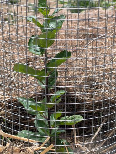FDR-2024-1 is a seedling that I planted using a technique where I plant 15 to 20 seeds in a permanent spot and then select the best tree to keep in that location.